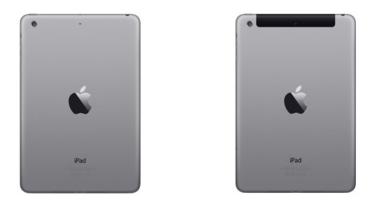 Photo Credit: Apple, Inc. (iPad mini 2 -- Wi-Fi Only, Left; Wi-Fi/Cellular, Right)